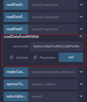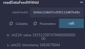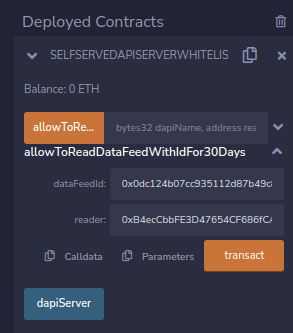 dataFeedIdandreaderparameters and click thetransactbutton and confirm transaction from Metamask.readeris your Metamask address.