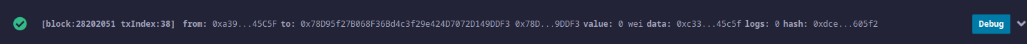 - After the transaction is confirmed, we should see below message on the Remix Console.